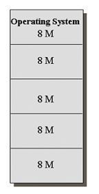 고정분할이라는 것은 메모리의 크기를 일정 단위로 분할하여 고정시켜 버리는 방법으로 프로그램은 자신의 크기에 알맞은 분할영역에 배치되는 것이다.