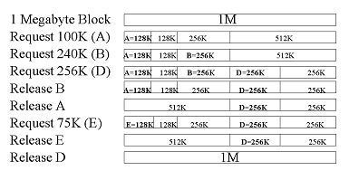 이 방법은 메모리를 할당하기 위한 단위를 정해 놓고 사용하는 방법이다. 50Kbyte, 70Kbyte등으로 메모리의 단위를 정해 queues를 구성해 놓은 뒤 프로그램이 실행될 때마다 프로그램 크기에 알맞은 unit를 제공하는 것이다. 우리가 여행을 갔을 때 콘도에 묶게 되면 이용자의 수에 따라 다양한 크기의 방이 제공되는 것처럼 말이다.