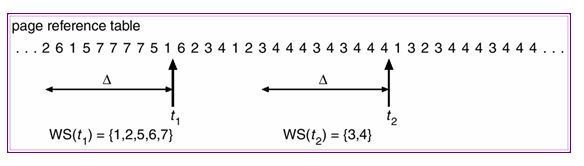 가상메모리시스템에서 주어진 시간에 프로세스가 참조하는 페이지프레임의 집합을 Working set이라고 말한다. 메모리가 부족해 page out 시킬 것을 찾아야 한다면 바로 Working set안에 있는 프로그램을 제외시키면 되는 것이다.
