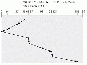 (12, 45, 80, 16, 30)의 데이터가 요구된다면 12부터 80까지 헤드가 이동되는 것이다. 바로 헤드가 12의 데이터 요구를 처리한 다음 무작정 이동방향을 따라 움직이는 것이 아니라 또다른 요구데이터가 있는지를 확인한 다음 이동하게 되는 것이다. 그렇게 되면 12, 16, 30, 45, 80까지 처리한 이후 이동방향으로 더 이상 요구데이터가 없음이 확인되면 더 이상 이동하지 않는다. 바로 요구된 데이터가 있는지 없는지를 계속해서 'Look'하며 이동하는 것이다.