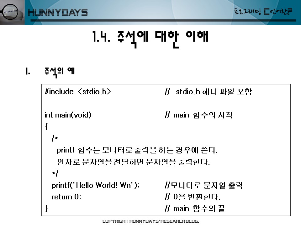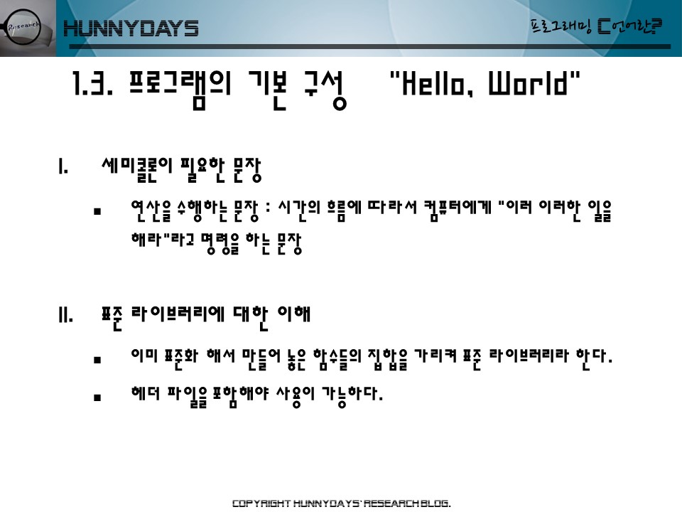 1.3. 프로그램의 기본 구성 “Hello, World”