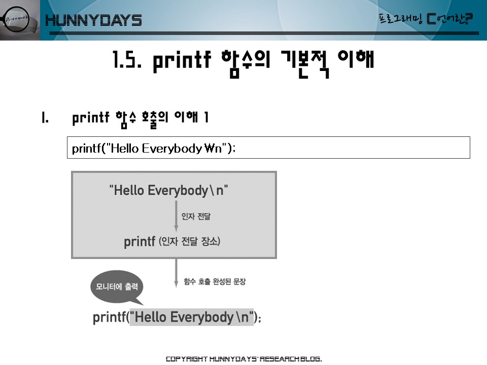 • printf 함수 사용의 예 1• printf 함수 호출의 이해 1