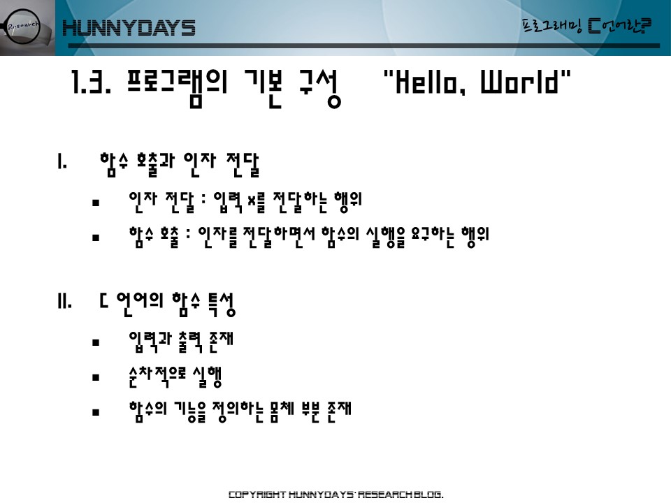 C 언어의 기본 단위는 함수이다.
