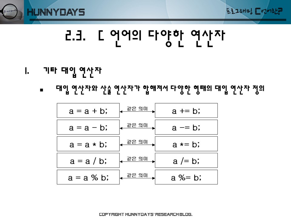 대입 연산자와 산술 연산자가 합해져서 다양한 형태의 대입 연산자 정의