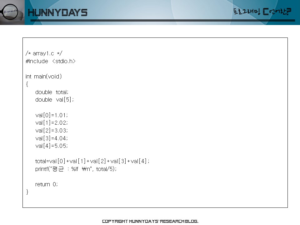 배열 길이 : 배열을 구성하는 변수의 개수(반드시 상수를 사용)