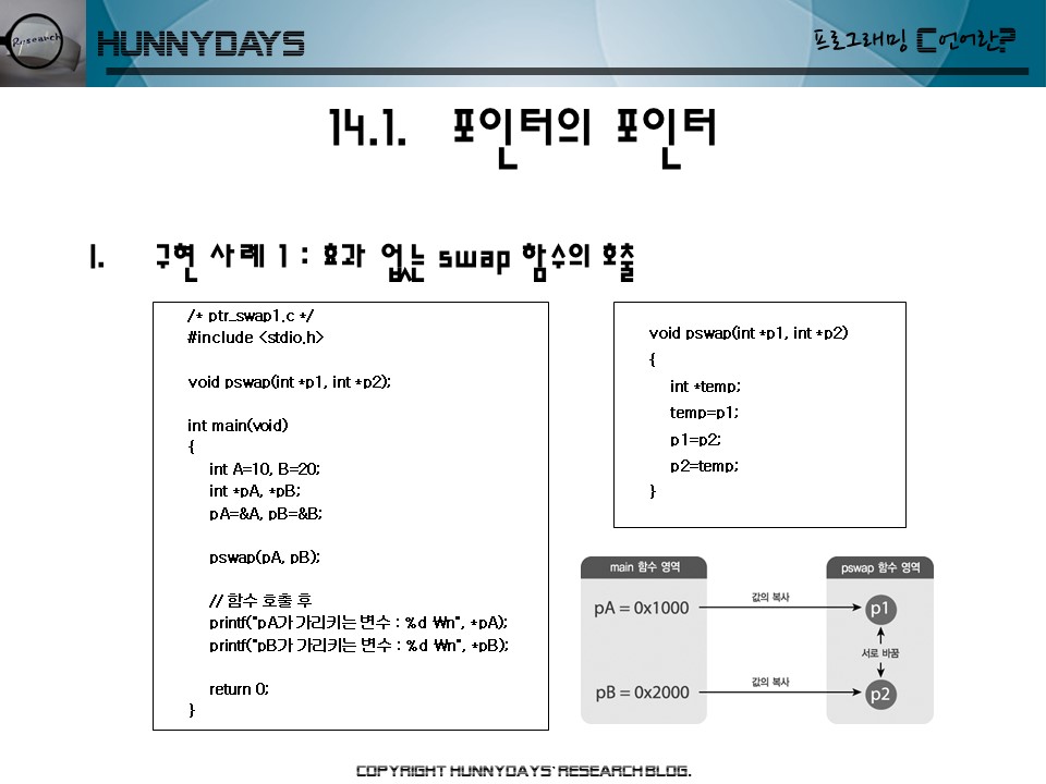 • 구현 사례 2 : 더블 포인터 입장에서의 swap